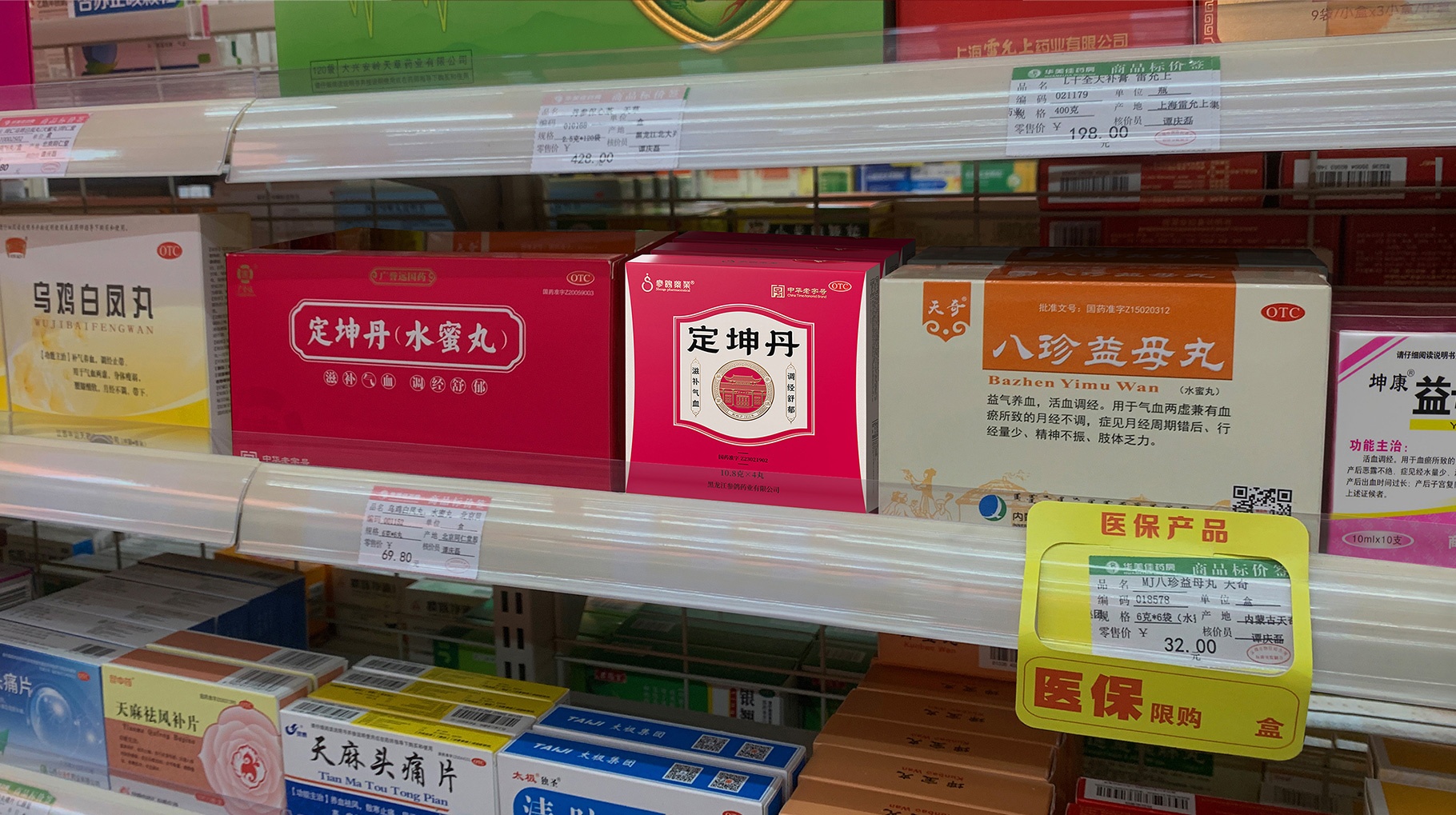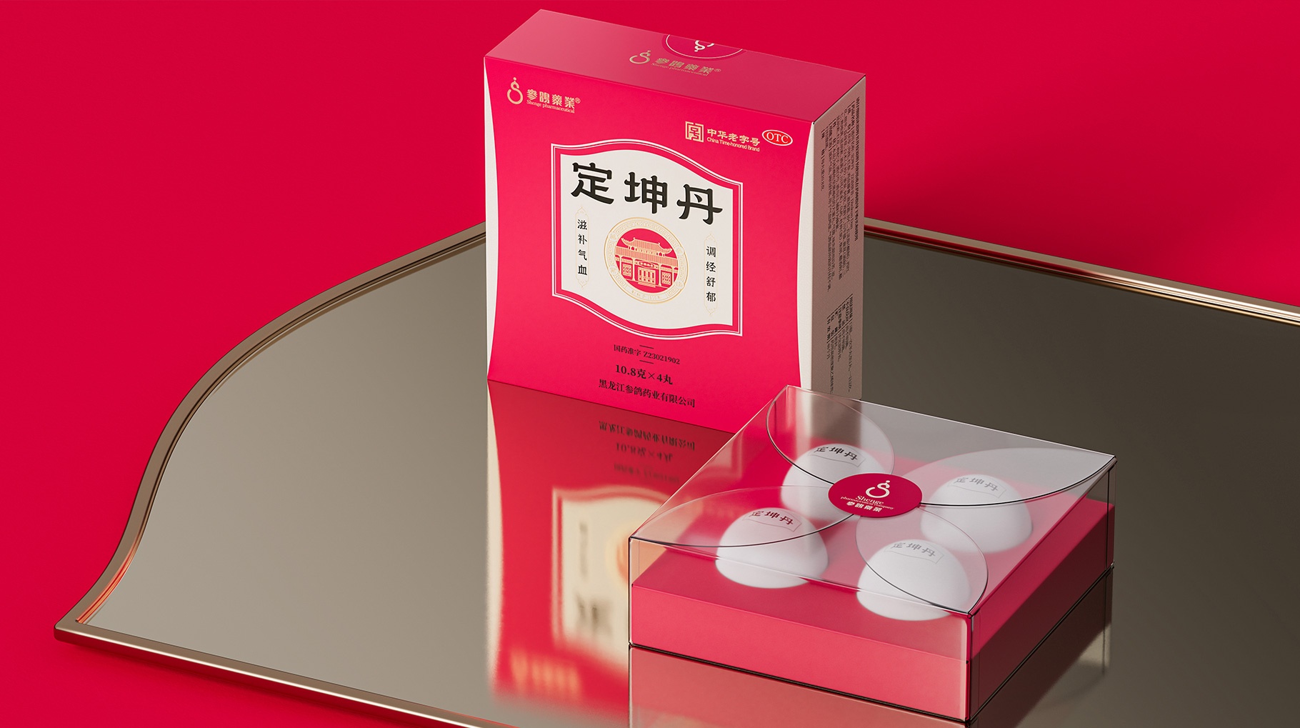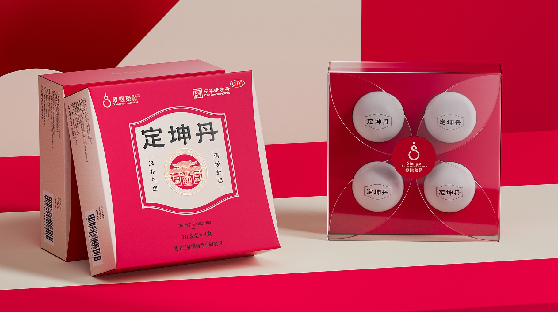 定坤丹作为非处方药,当前的核心销售渠道主要以医院及药店为主,产品在前期由医生推荐销售及使用。从长远角度思考一定是基于产品认知价值及货架识别去构建产品竞争力,不管是作为医生或消费者在售卖过程中,产品的识别优势一定是终端货架的基础竞争力,醒目的颜色及大气的符号气质不仅仅是打造成熟产品的基本要求也是货架突围的第一诉求,红色作为女性滋补的主色是符合定坤丹的第一认知调性,同时简约大气的符号也是让品牌建立认知信赖感的认知突围的。