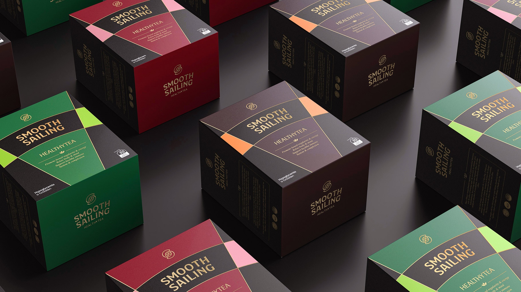 SMOOTH SAILING 功效茶的销售市场在新加坡和东南亚市场,同道团队在思考产品包装的时候第一认知是打造品牌识别力,强化认知,让消费者第一眼在货架中发现及找到产品,所以产品的包装视觉符号以简约、大气,让人一目了然的产品包装设计理念为出发点。