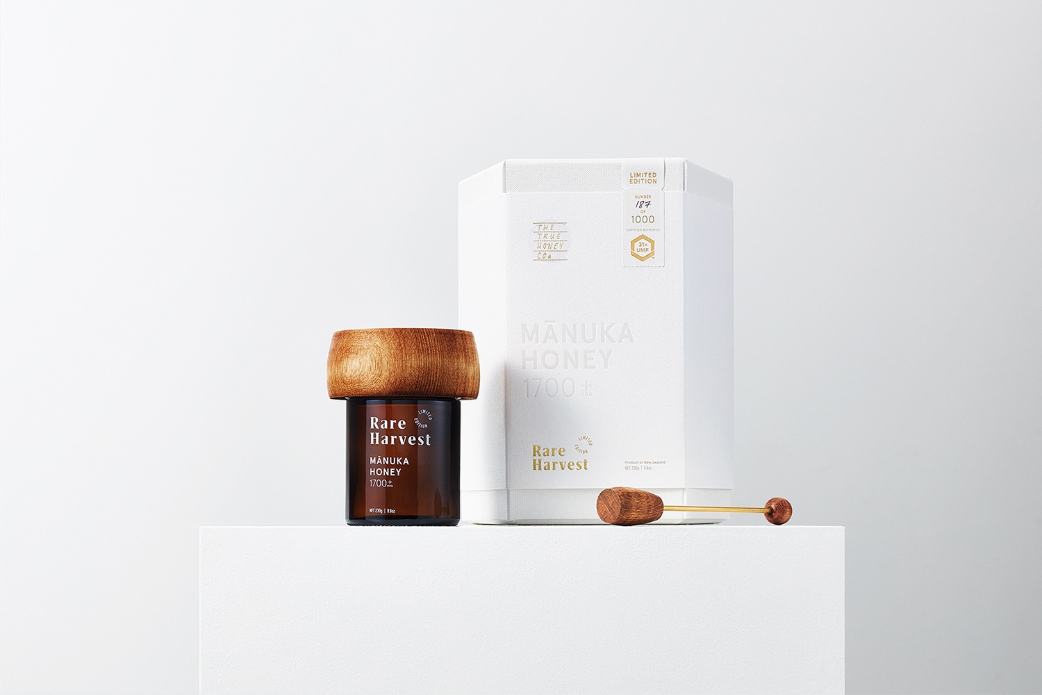 在2019年再次参与该项目,为Rare Harvest开发包装,这是一种来自TTHC的限量版麦卢卡蜂蜜,其MGO值达到前所未有的1,700+(31+UMF),是有史以来最高记录。马克思设计公司与Think Packaging公司合作,进一步发展了第一个系列的价值和稀有性的材料语言,并在Mānuka花的主题上进行了折叠。